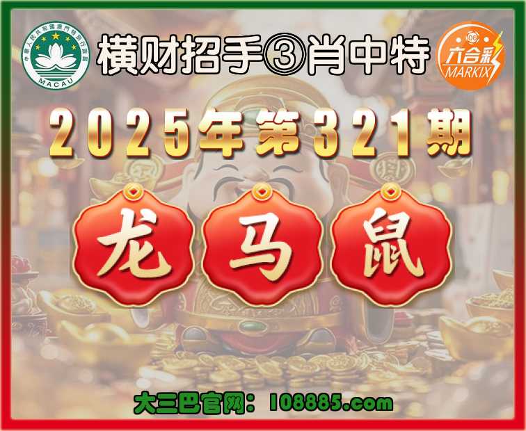 321期:《横财招手》 🧏‍♀️③肖中特🧏‍♀️【龙.马.鼠】开:羊23