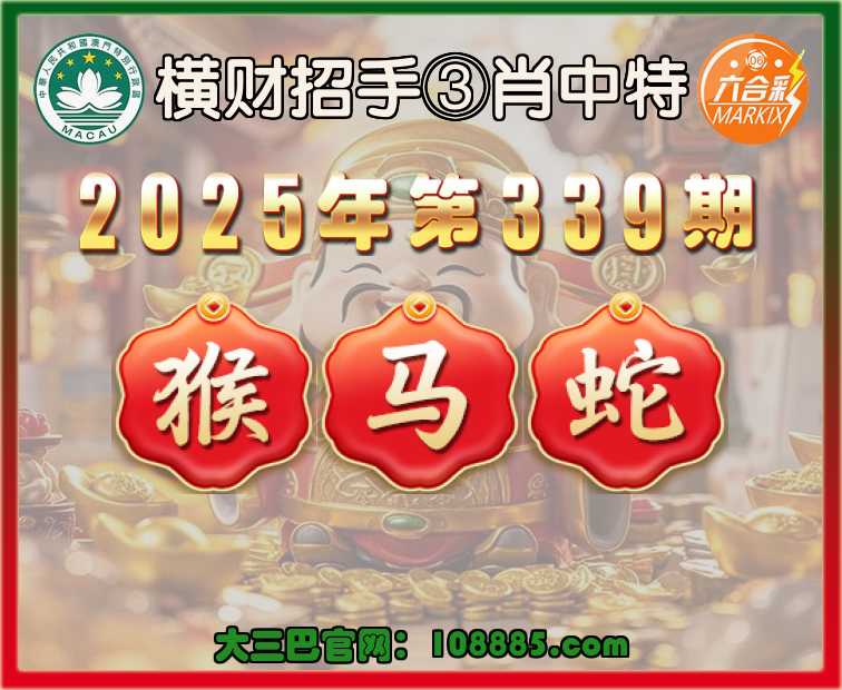339期:《横财招手》 🧏‍♀️③肖中特🧏‍♀️【猴..蛇】开:马48